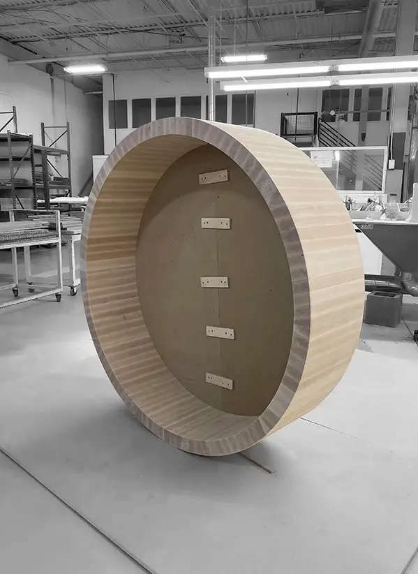 A glimpse into our manufacturing process, where raw timber is transformed into perfectly symmetrical sculptural components