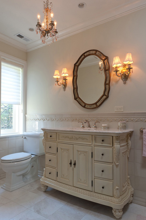 This master bathroom features a gorgeous custom designed vanity that is enhanced with premium woodworking details that truly makes a statement: