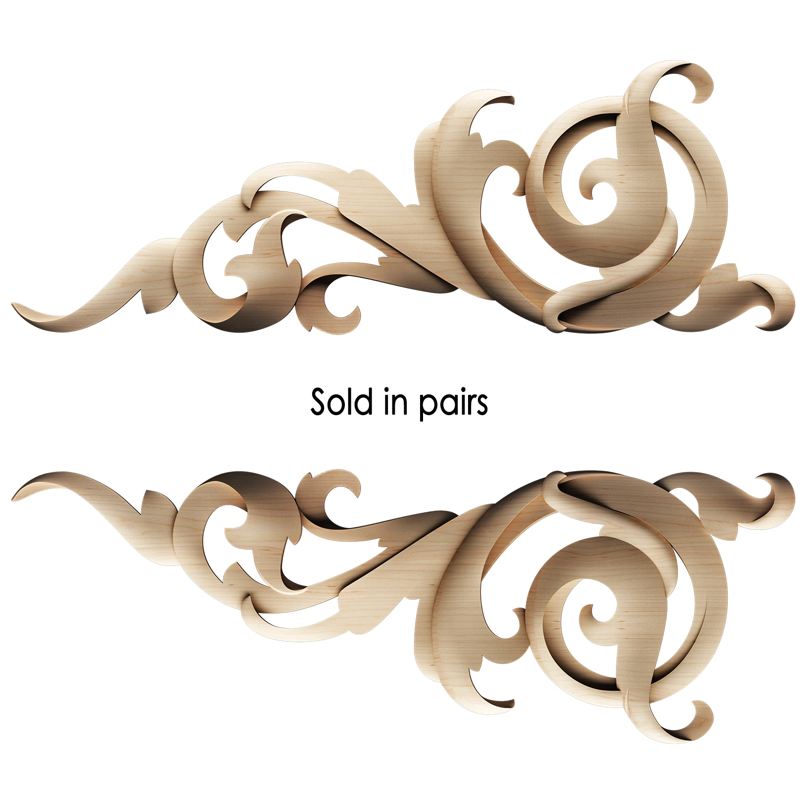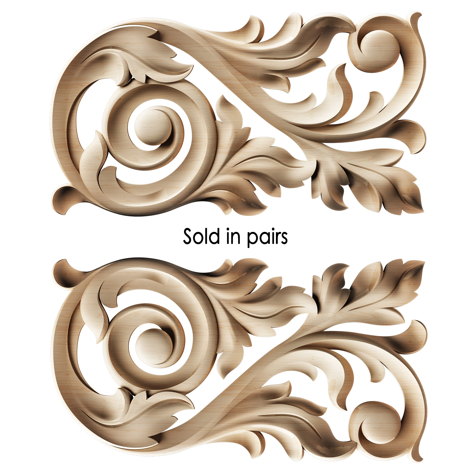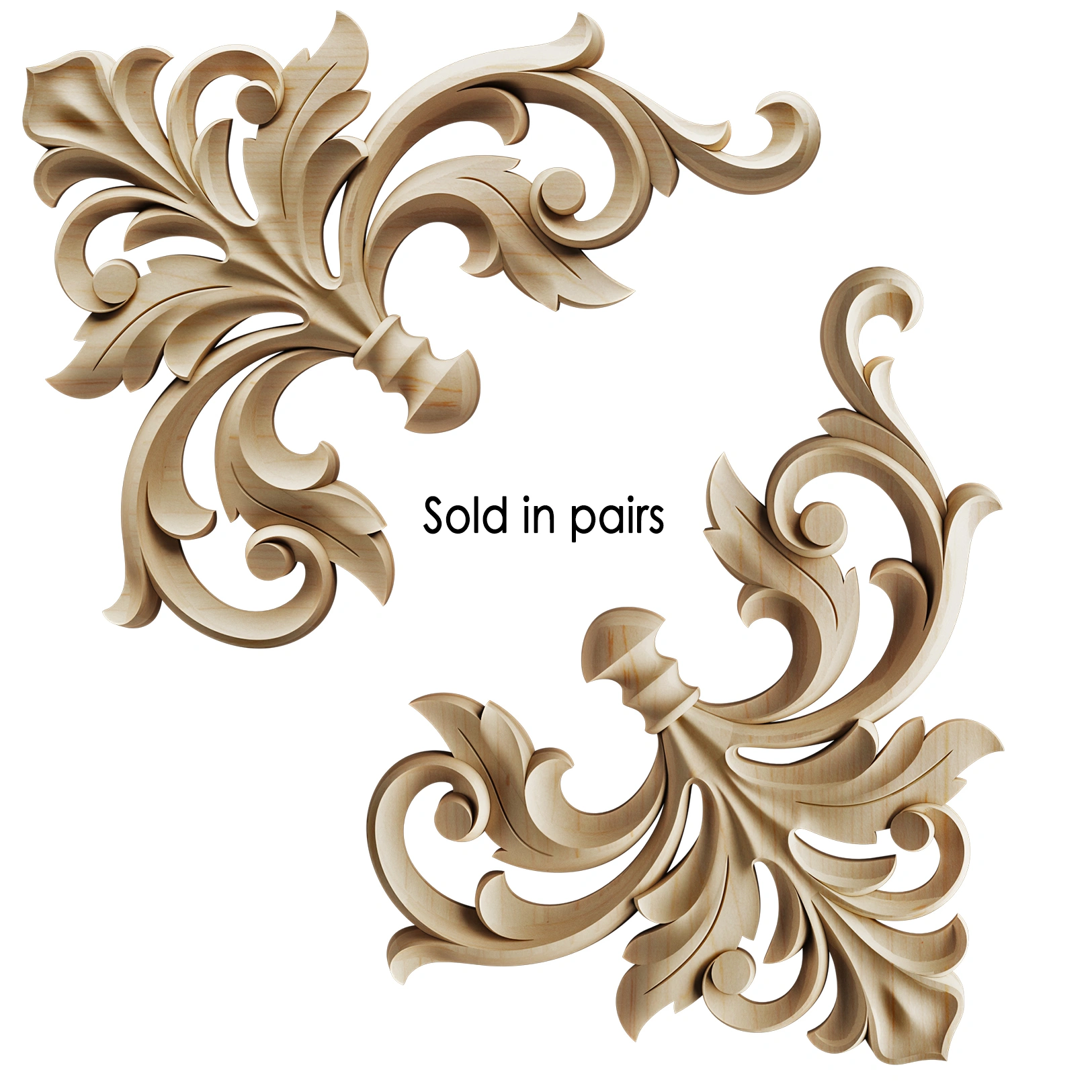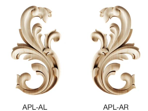 Wood appliques and onlays are the artisan's choice for adding timeless elegance to furniture, cabinetry, and doors. These decorative wood embellishments transform flat surfaces into focal points with intricately carved detail. Unlike flat veneers, our solid wood appliques are crafted with dimension and depth, offering a true hand-carved appearance for restoration projects or custom designs.
