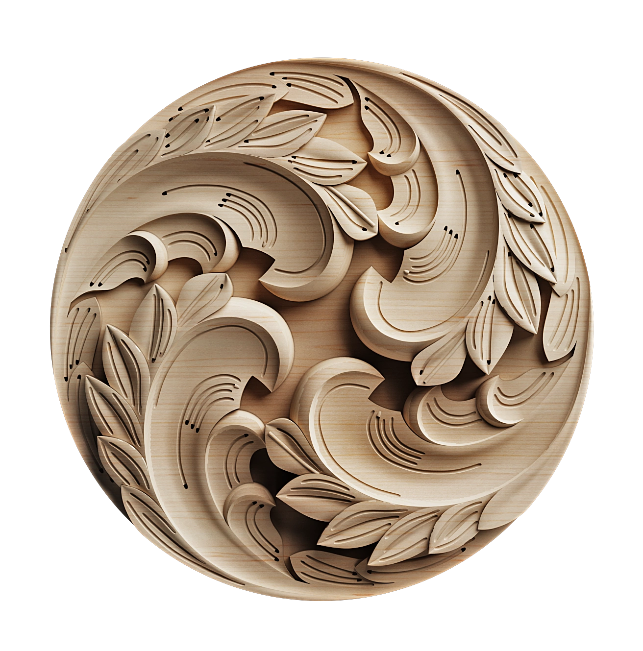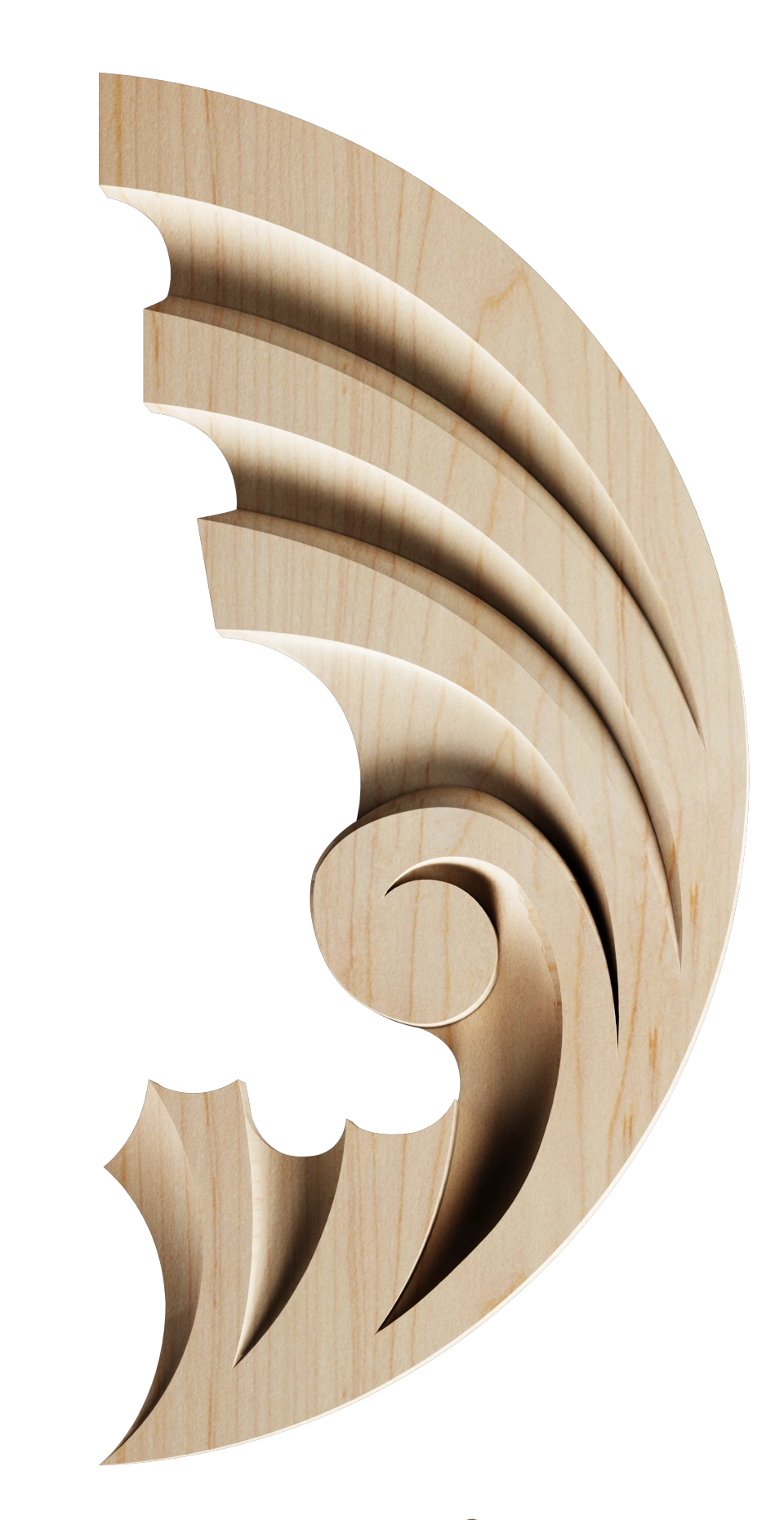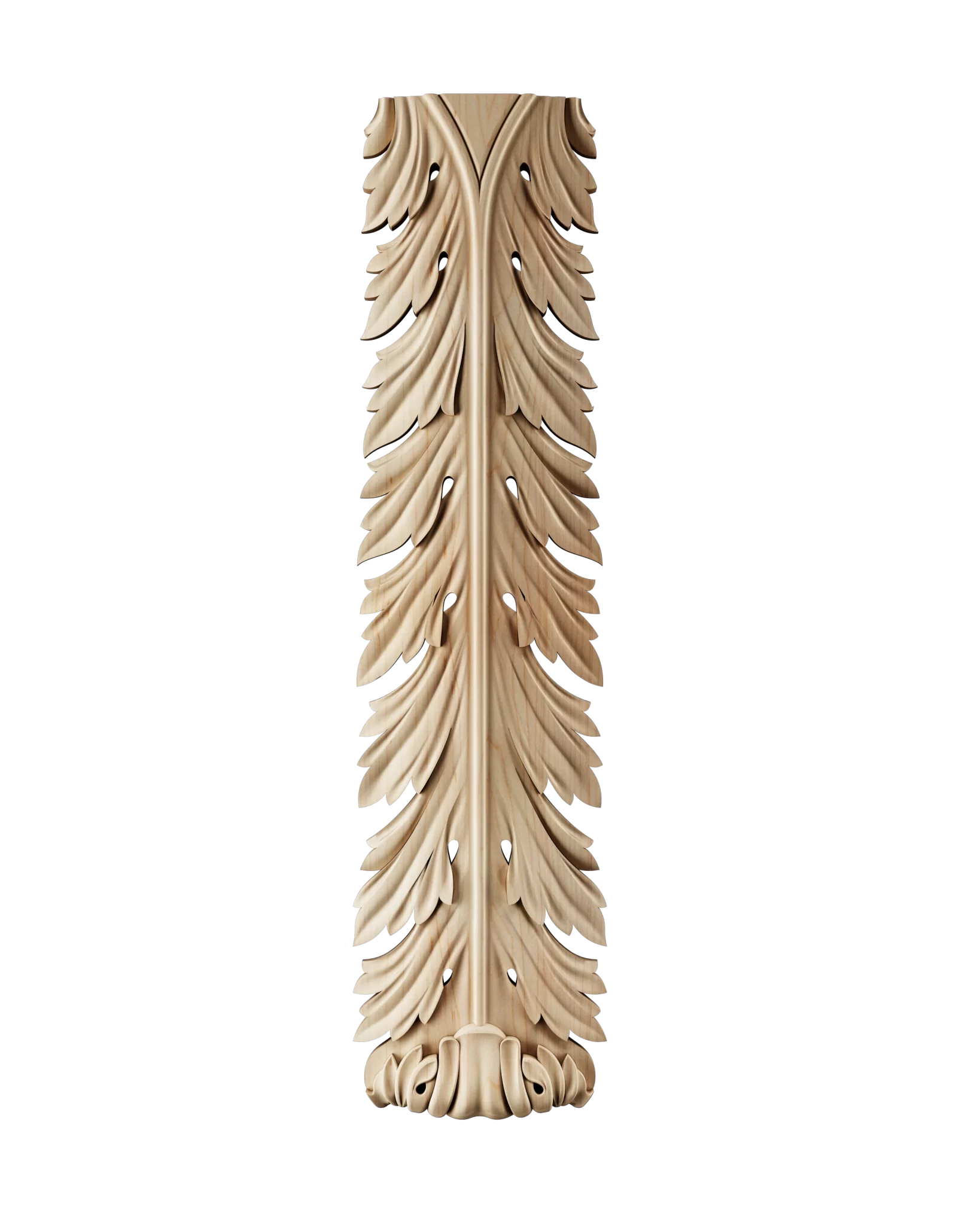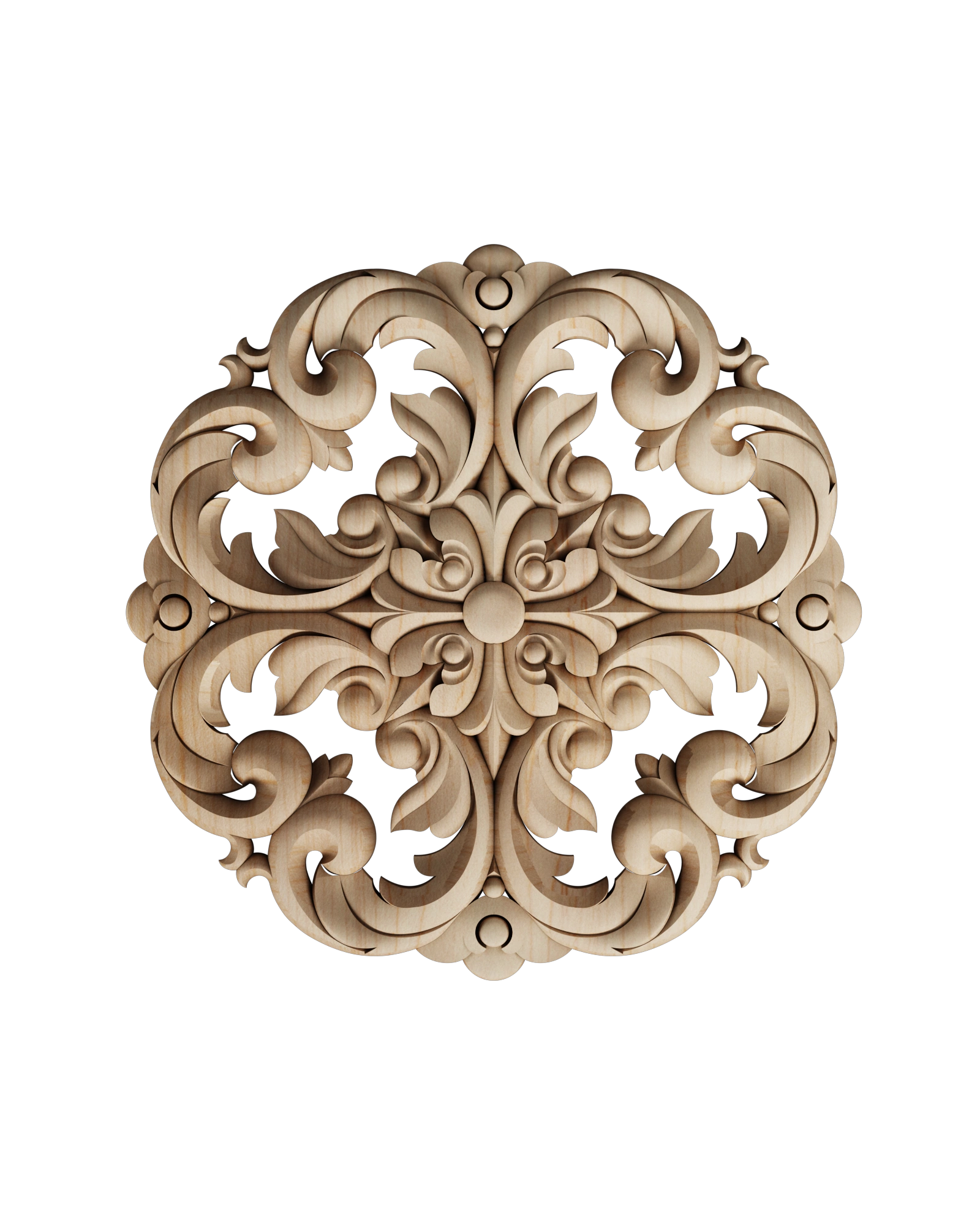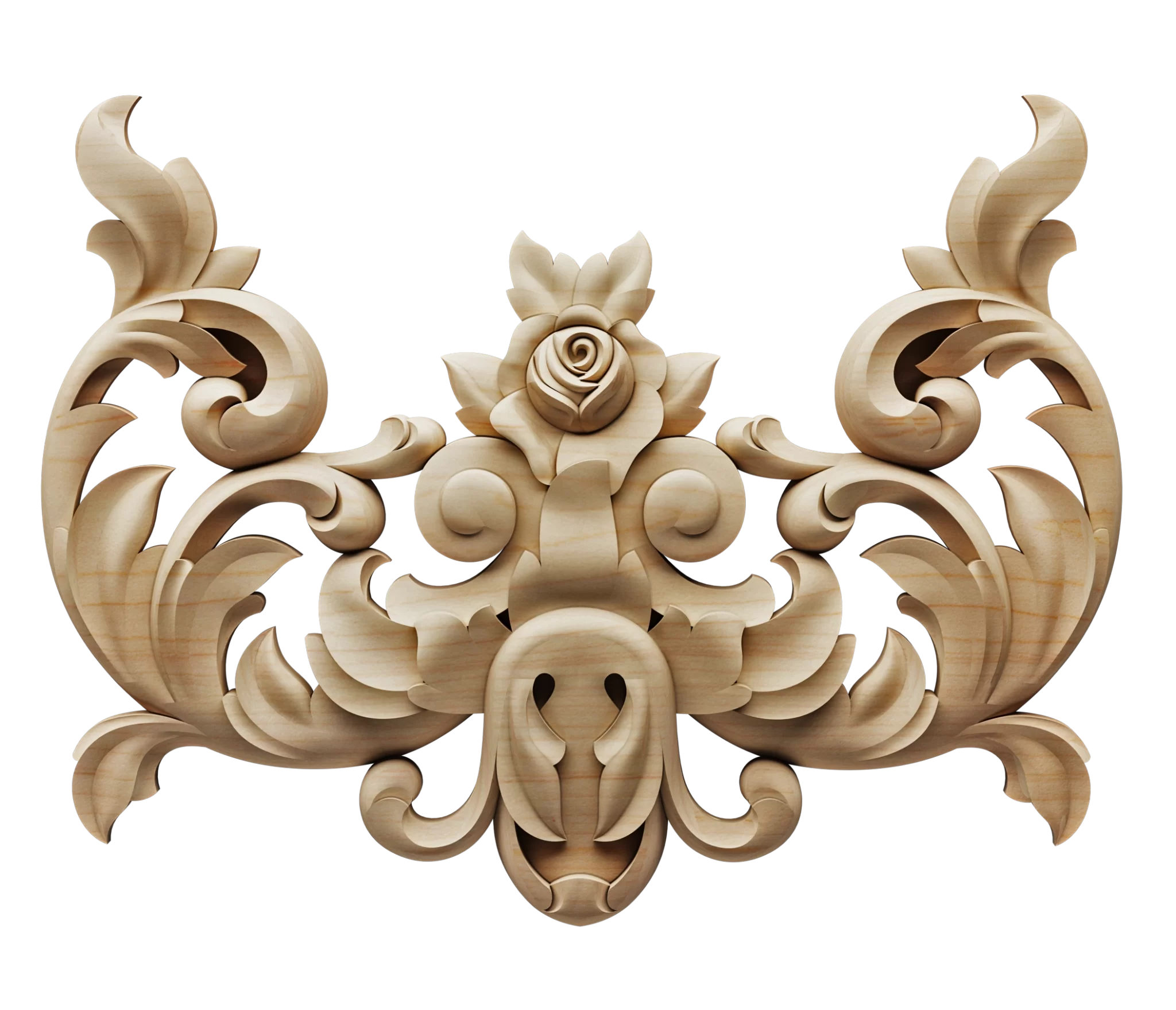 Each applique and rosette is hand-finished to highlight the natural grain and beauty of the wood. Our collection includes classic motifs such as acanthus leaves, floral patterns, scrolls, and geometric designs, offering designers and millworkers endless creative possibilities.