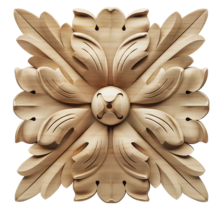 Solid Wood Appliques & Rosettes for Architectural Millwork and Decorative Elements