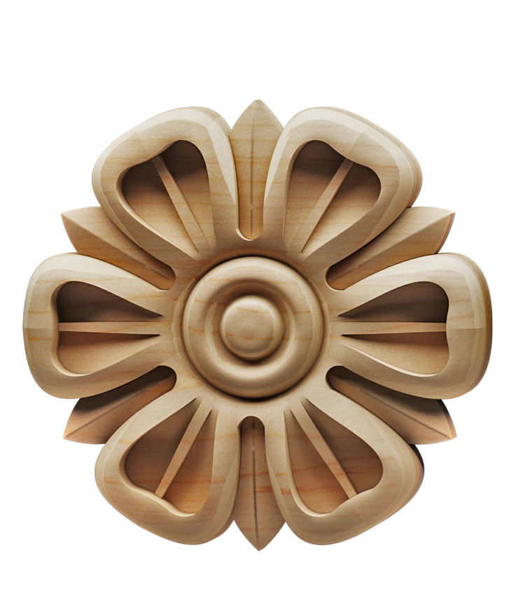 Whether you’re restoring a historic interior or designing a new luxury space, our solid wood appliques and rosettes add character, depth, and artisanal quality. They integrate seamlessly with custom mouldings, trim, columns, and other architectural elements, enabling you to create richly detailed environments that stand the test of time.