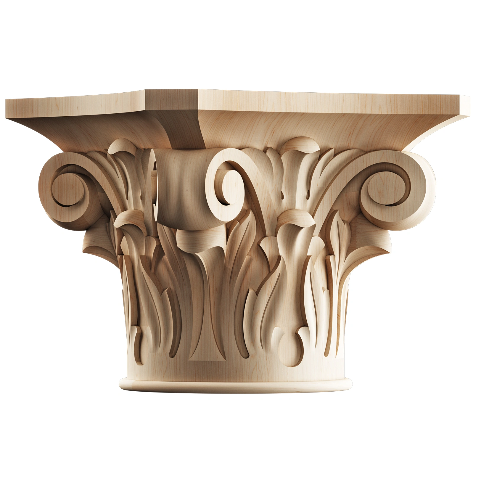 Crafted from high-quality hardwoods such as maple, oak, cherry, and alder, each capital is precision-machined or hand-carved by skilled artisans.