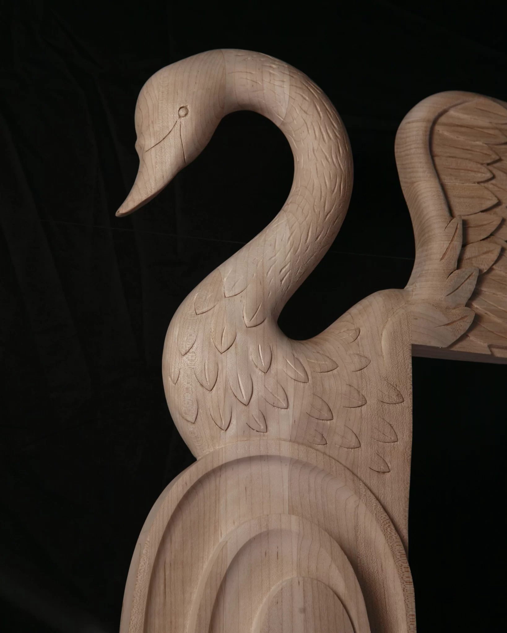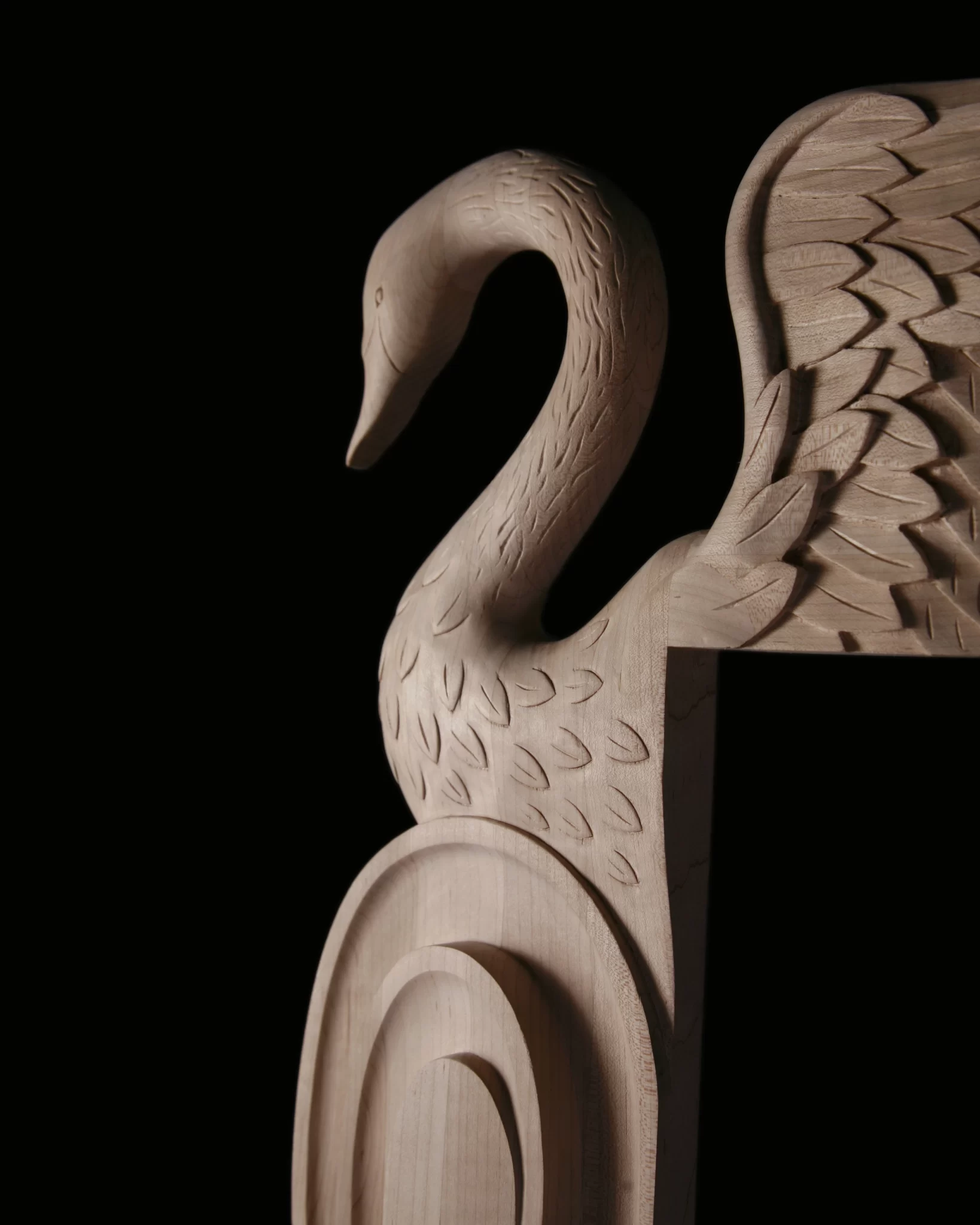 Elevate your interiors with this custom carved solid wood post featuring an exquisite swan design with outstretched wings. Handcrafted from premium North American hardwood, this architectural wood carving showcases intricate detailing that combines elegance and strength. Perfect for luxury cabinetry, kitchen islands, mantels, staircases, and custom furniture, this decorative post brings artistry and timeless craftsmanship into modern spaces.