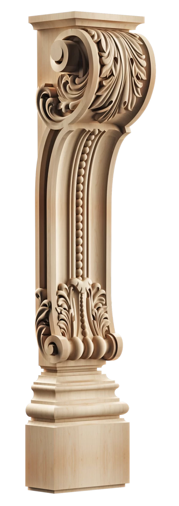Introduce a touch of timeless elegance to your kitchen with this exquisitely carved solid wood kitchen island post, featuring a distinctive beaded column flanked by beautifully rendered acanthus leaves. This design offers a sophisticated blend of classic and ornate detailing, ideal for enhancing traditional, transitional, or even some contemporary kitchen aesthetics. Crafted from premium solid wood, this support is not just a decorative element but a sturdy, functional component for your kitchen island or counter overhang. Available in over 15 wood species, including rich Maple, deep Cherry, and classic Oak, allowing for seamless integration with your existing décor. Customization options are available to ensure the perfect dimensions and unique detailing for your specific design vision.